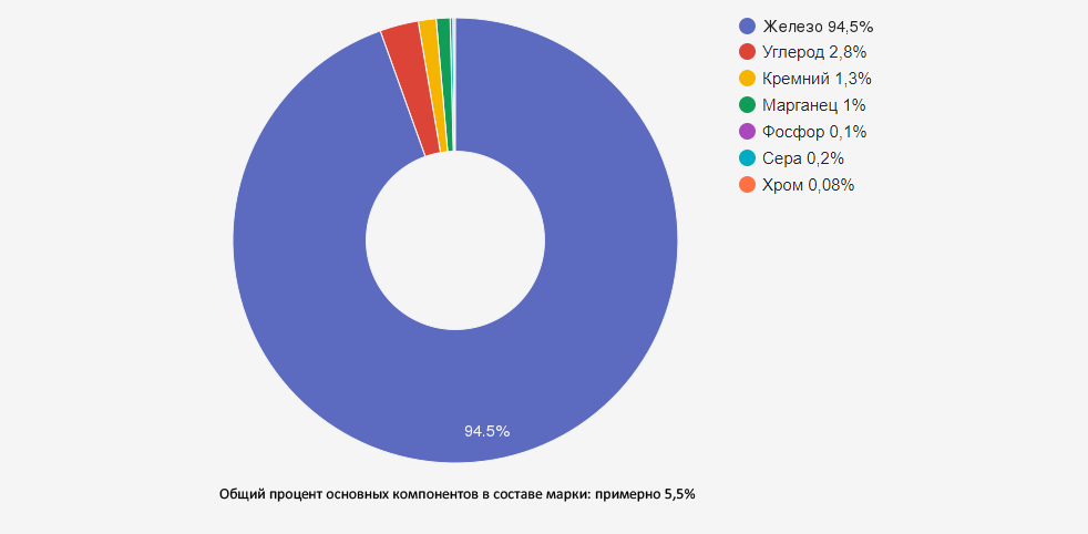| Железо (Fe) | остальное (около 95,0) | Основа сплава |